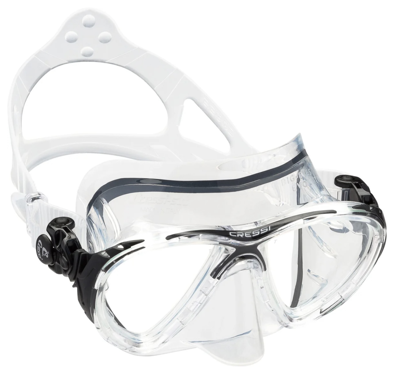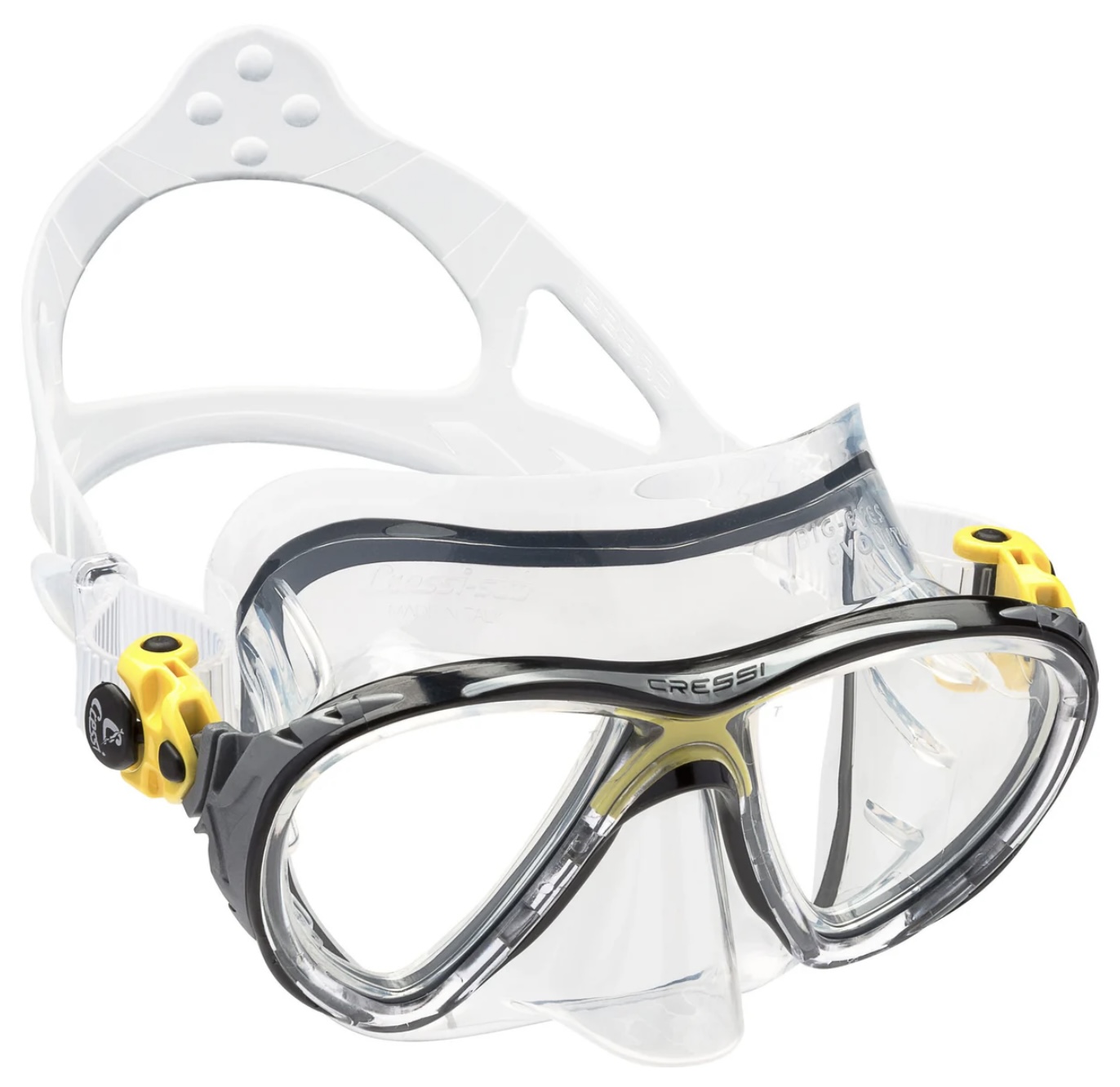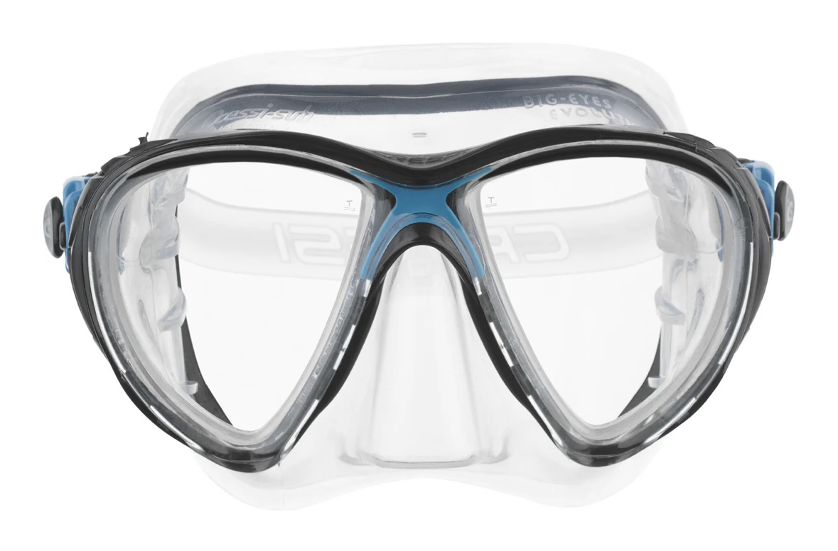 Die Big Eyes Evo ist eine der meistverkauften Masken weltweit, aus guten Gründen: ihre Passform ist hervorragend, Sie passt auf 95% aller Gesichtsformen. Die Gläser sind abgewinkelt und sehr groß, in der Summe ergibt sich ein sehr großes Sichtfeld, auch nach unten. Durch die spezielle, neuartige Rahmenkonstruktion ist dieser auf ein Minimum reduziert und so gut wie nicht mehr wahrnehmbar. Die Schnallen sind komplett beweglich gelagert und können bei Bedarf "eingeklappt" werden, zur Verringerung des Packmaßes.