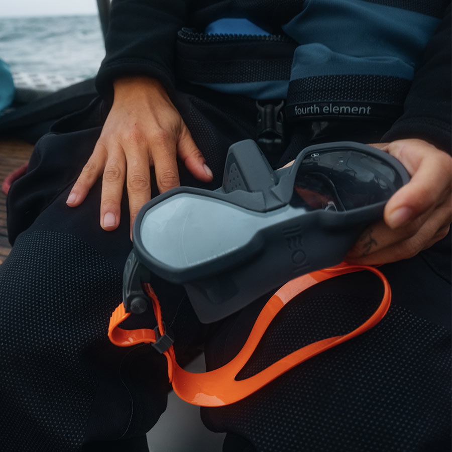 Die Seeker-Maske wurde mit zwei Hauptzielen entwickelt: das Sichtfeld des Tauchers zu maximieren, um dem Erlebnis, keine Maske zu tragen, mit einer einzigen Linse so nahe wie möglich zu kommen, und jedem – nun ja, fast jedem – zu passen. Eine neue Gesichtsgeometrie wurde mit einem weichen Silikonrand kombiniert, um eine hervorragende und bequeme Passform zu gewährleisten.